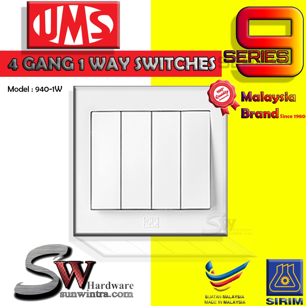 Ums 9 Series 940 1w 4 Gang 1 Way Switched Light Switch Fan Switch Sirim Suis Lampu Suis Kipas Shopee Malaysia